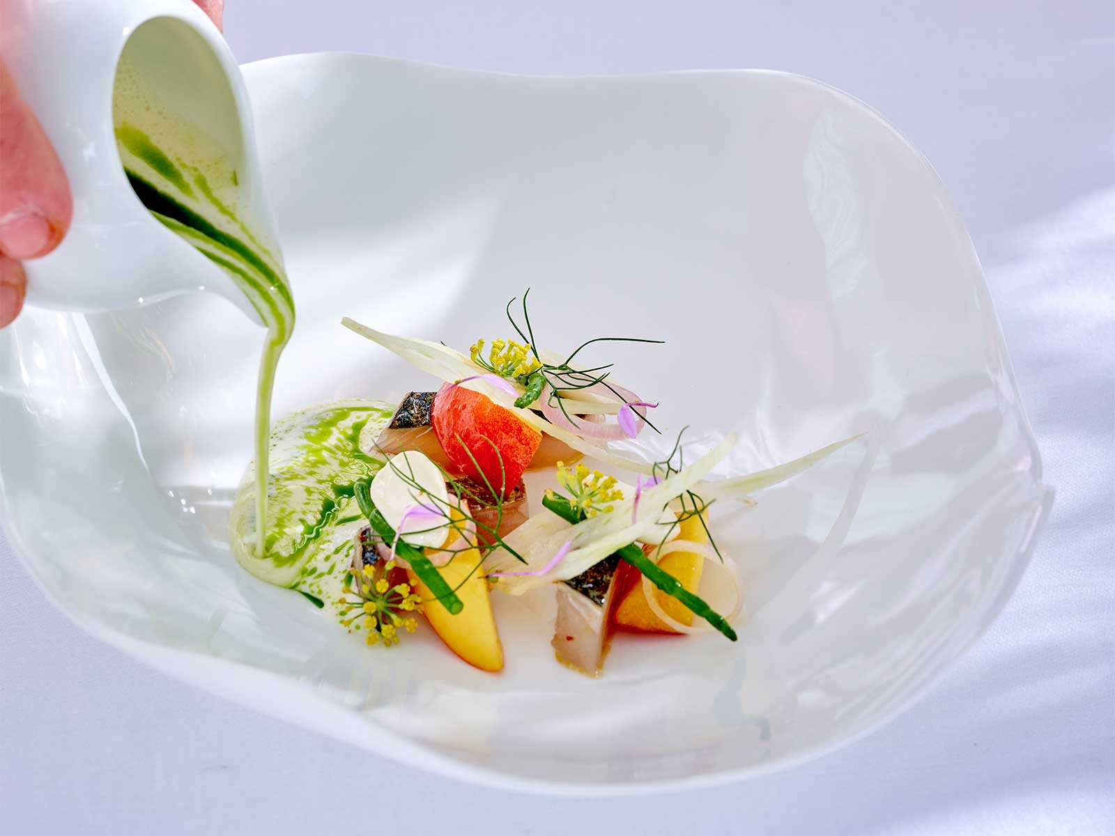 Hélène Darroze travaille avant tout avec instinct et émotion afin de proposer une cuisine d’auteur fidèle à sa sensibilité.
